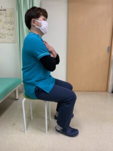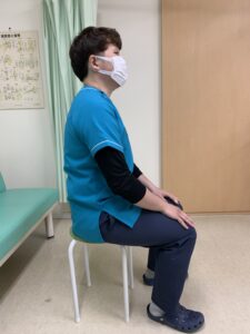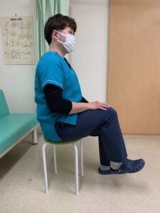②  ゆっくりと椅子へ腰を下ろす(この時、深く腰をかけないように注意!)