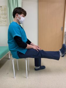 ②  片膝を伸ばし、伸ばした状態で、5秒キープし、もとに戻す